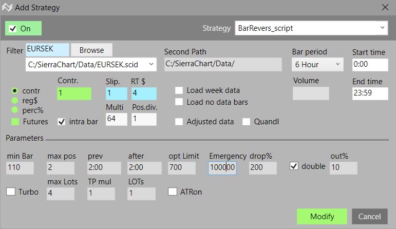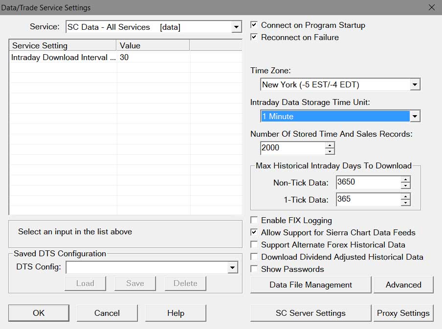 Example data setting in Sierrachart: