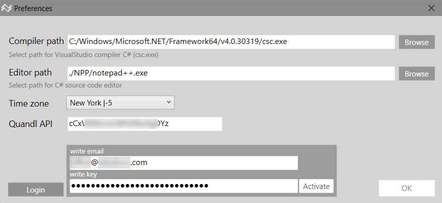 • In the Editor path, you can change the path to the strategy code editor. We recommend using the supplied editor.