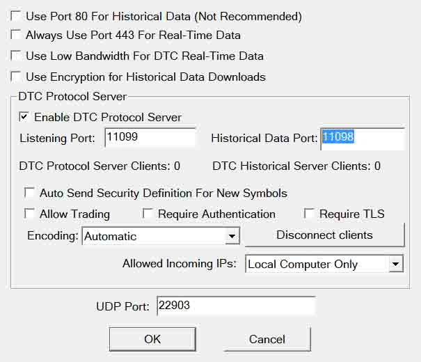 You can set “Service” on your Broker (for example, Interactive Brokers). You can then trade – place a orders directly from the graph. “Max Historical Intraday Days To Download” determines the maximum depth of history to upload. Alternatively, you can enter other values. Depending on the provider, what a deep history is available for that market.